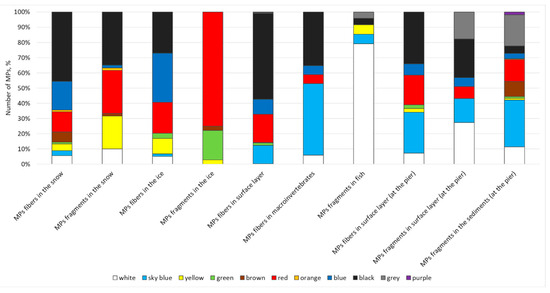 Our study was not designed to examine toxicological impacts, but it does provide insight into both the types of polymers encountered and the variety of colors (and, consequently, dyes). Furthermore, given the location in the pier and ship mooring area, it is clear that paints and varnishes are not the only contaminants there. Particles in this zone can potentially adsorb fuels and lubricants and many other substances, which must be taken into account when assessing toxicological effects under natural and experimental conditions. Furthermore, some studies note that low concentrations of particles may pose a hazard, but only under conditions of chronic exposure [77]. It is worth noting that the results of some recent experiments show that microplastic particles, for example, can mitigate the toxic effects of copper, while the results for other pollutants are highly variable [78]. Such results confirm the ambiguity and difficulty of interpreting the effects of microplastic particles and the need for further research (including studies on the occurrence of oxidative stress) [77].
