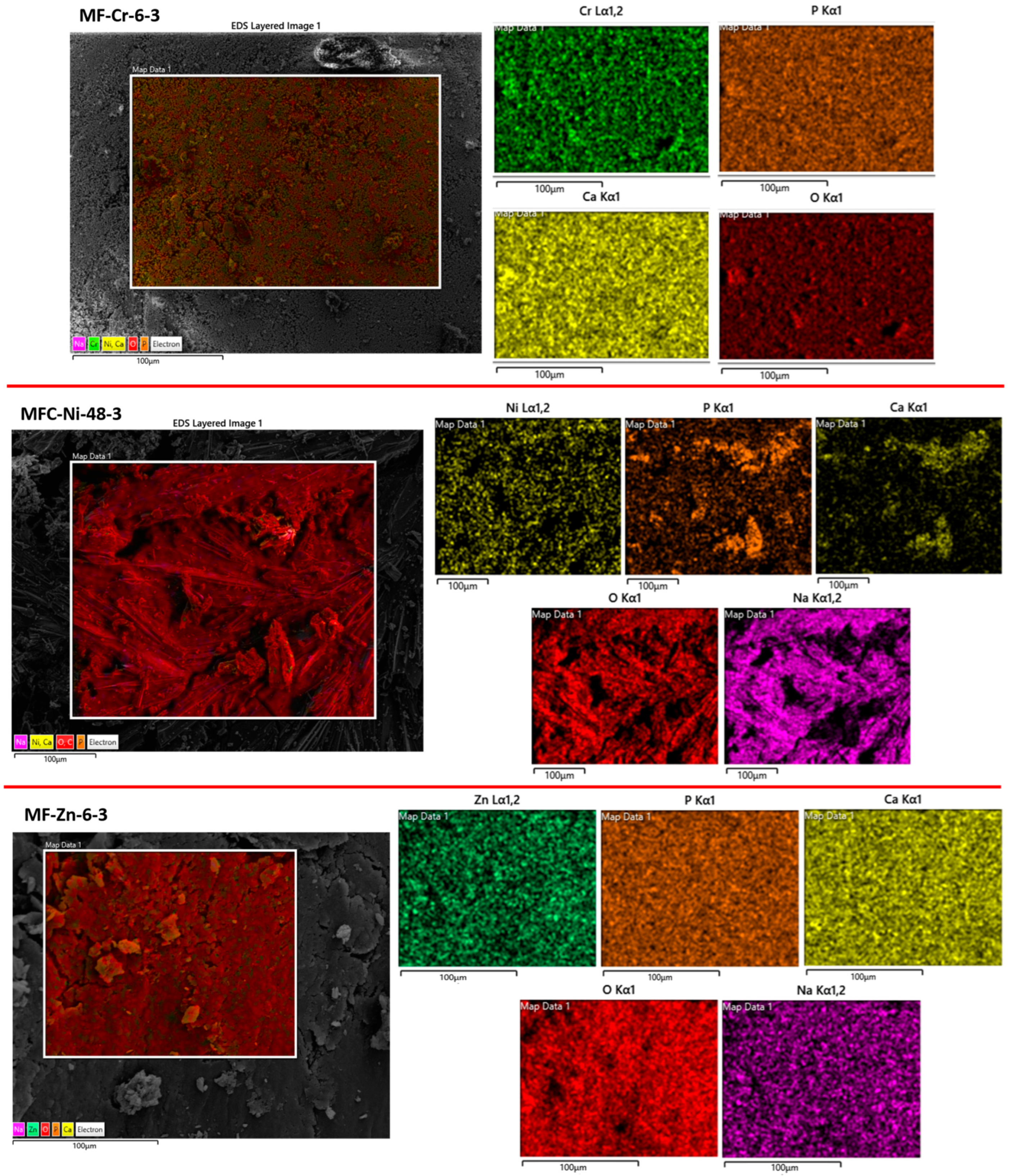 SEM-EDX mapping corresponding to samples at natural pH.