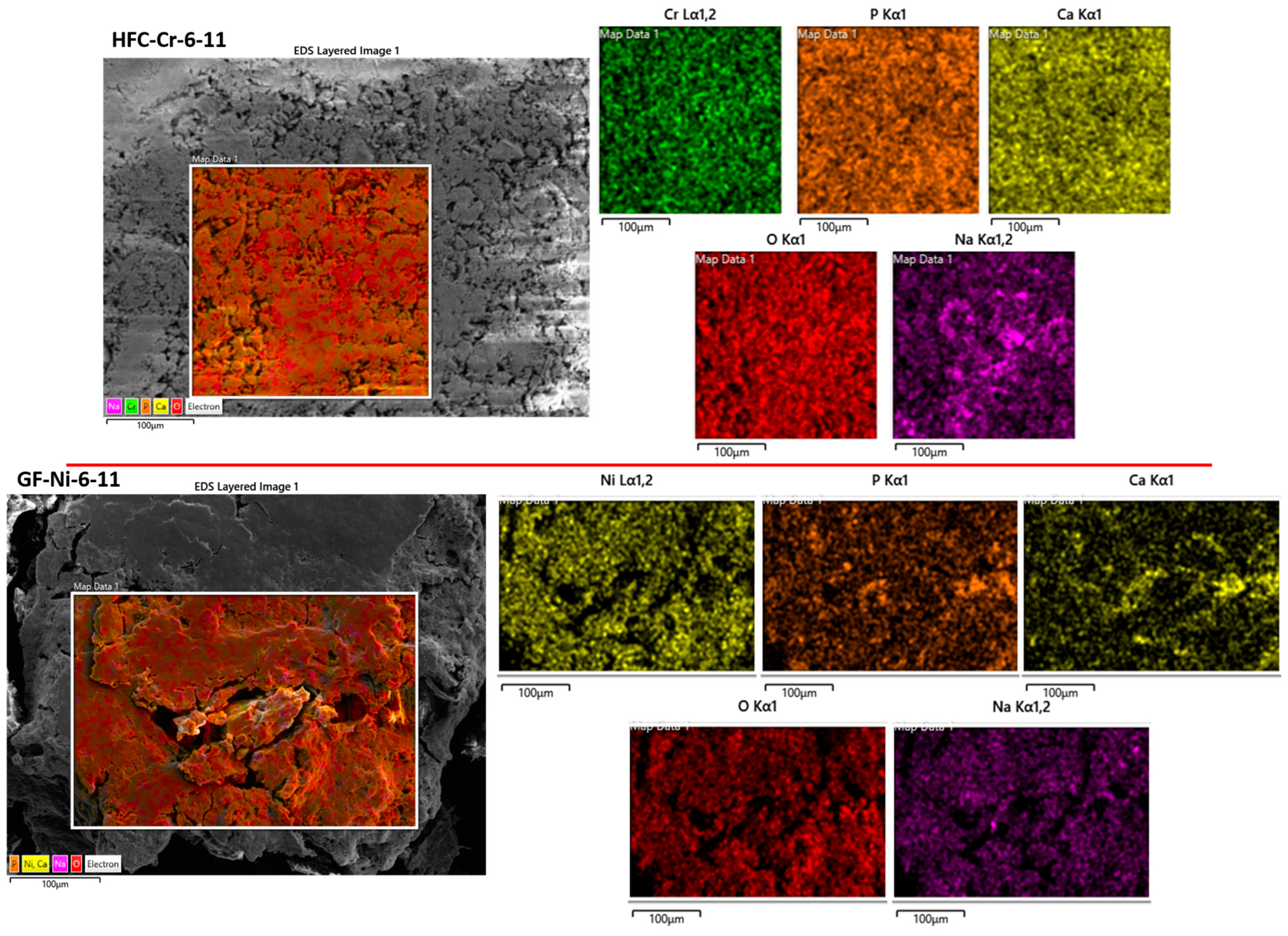 SEM-EDX mapping corresponding to samples at pH 11.