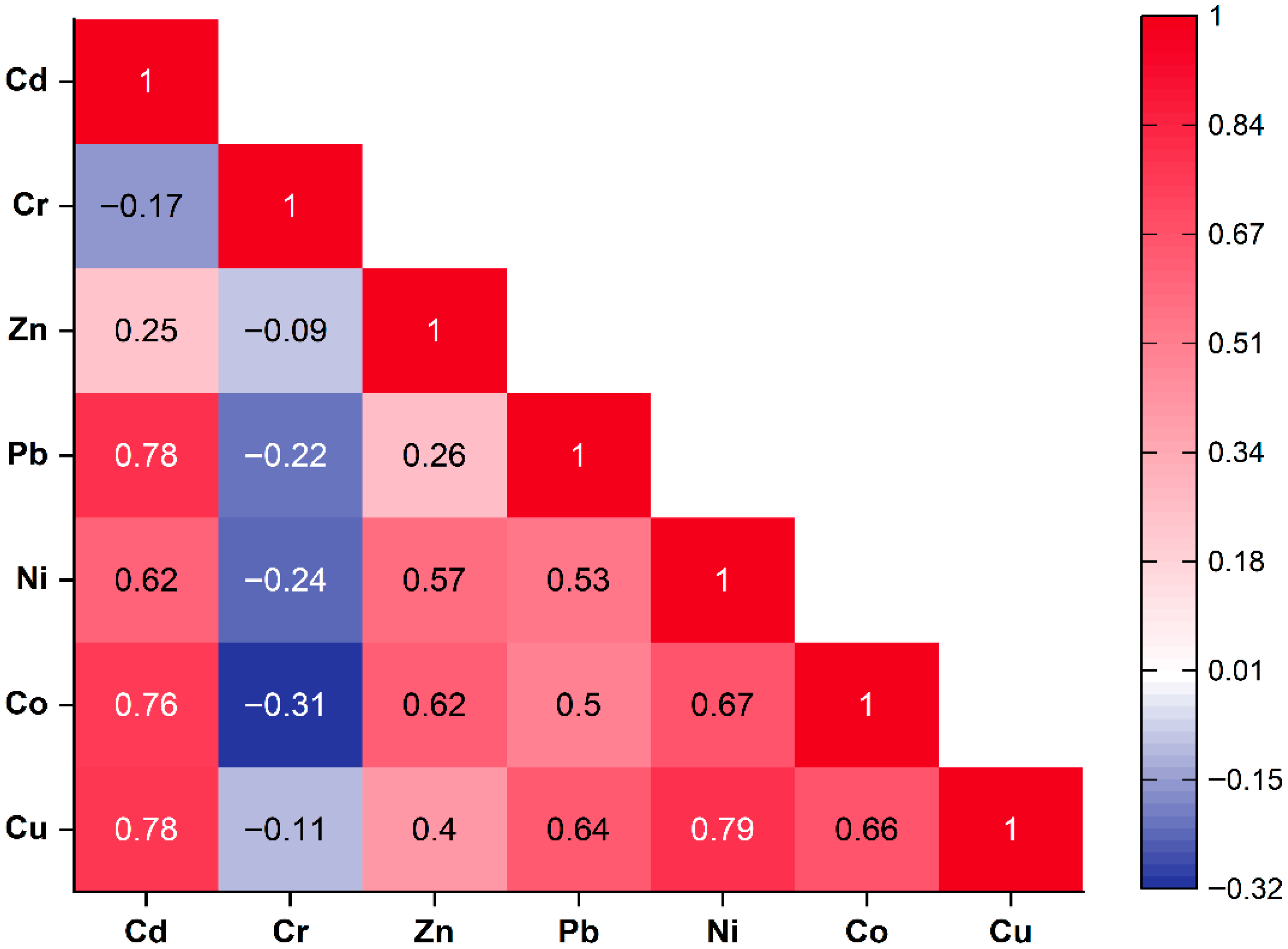 3.1. Heavy Metal Concentrations and Statistical Analysis