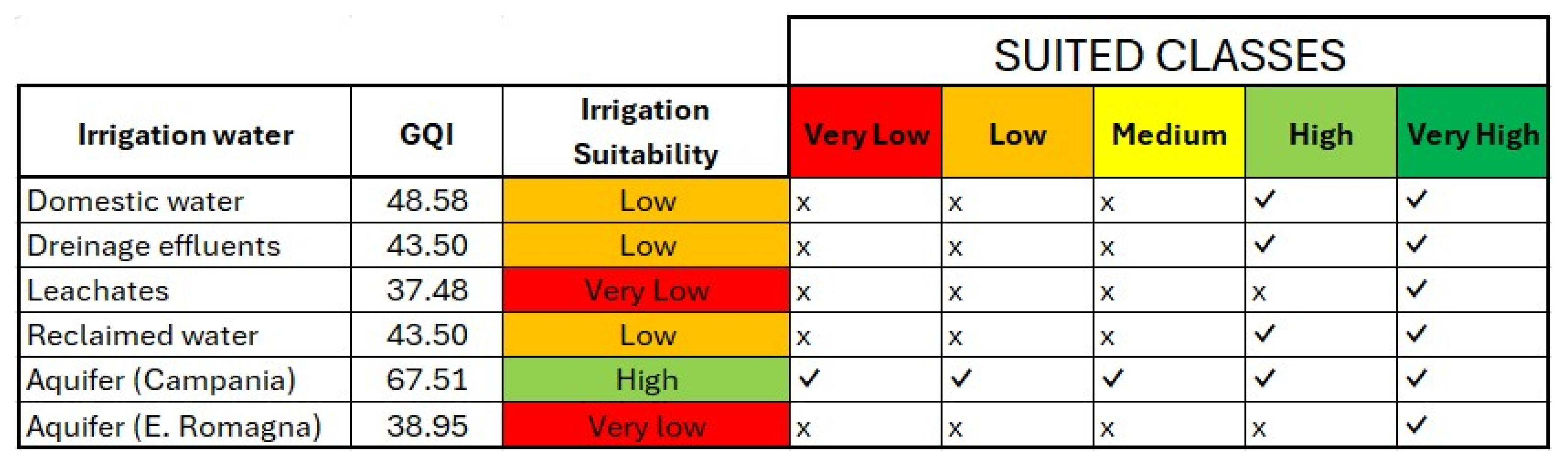 | Ionic Species | Domestic Water | Dreinage Effluent | Leachate | Reclaimed Water | Volturno Aquifer | Berra Aquifer |
