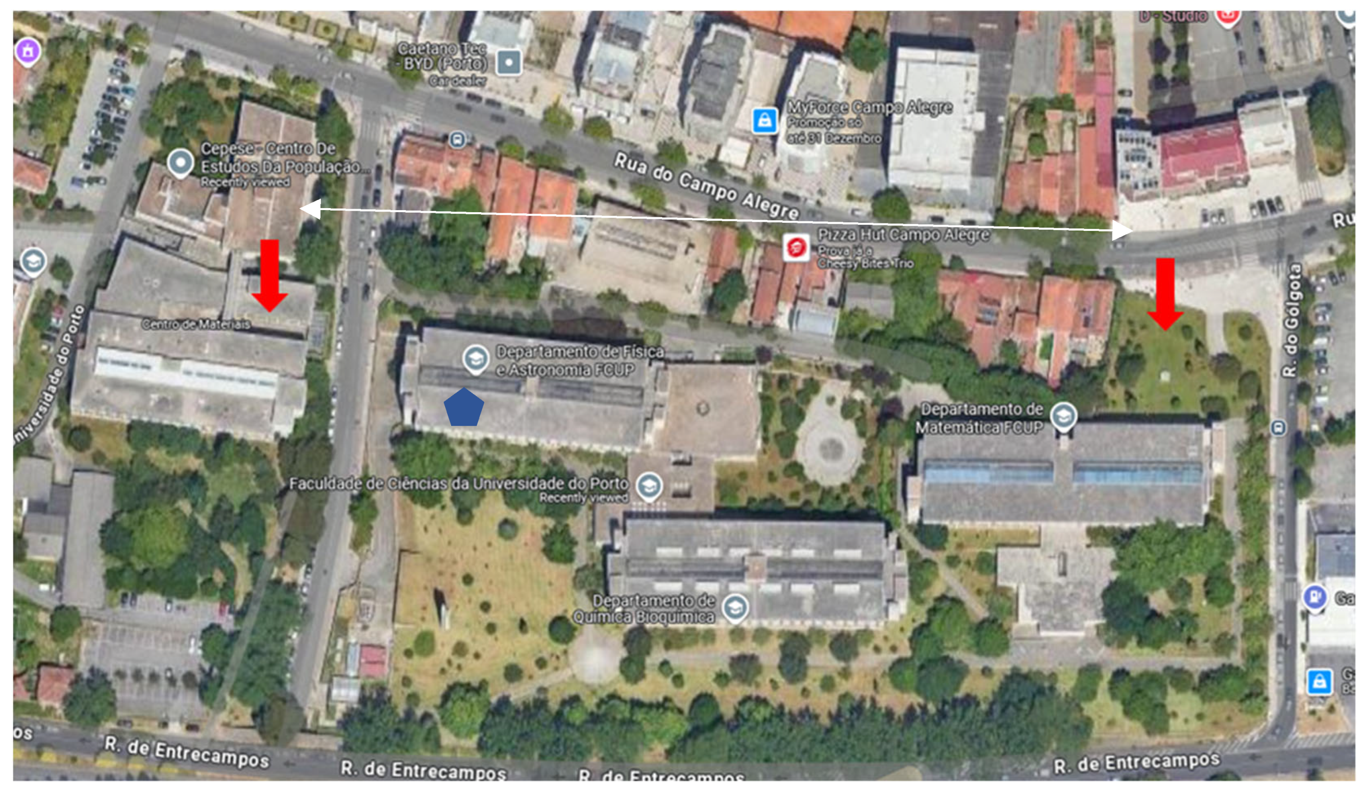 Figure 1) were selected on the Faculty of Sciences of the University of Porto’s campus, in the Campo Alegre area, a residential neighbourhood. This location is close to the inner ring road (VCI), a major urban highway encircling central Porto, which lies approximately 200–300 m south of the sampling site and contributes to traffic-related emissions in the vicinity. The Douro River estuary is situated roughly 3–4 km to the northwest of the sampling location, and the Atlantic Ocean coastline (Foz do Douro) is approximately 5–6 km to the west, placing the site within an urban corridor influenced by both fluvial and maritime air-mass trajectories. Land use around the campus is predominantly residential and commercial, with green urban spaces (gardens) interspersed, and there are no immediately adjacent heavy industrial facilities. This location is highly impacted by frequent traffic jams during peak hours, reflecting the area’s role as a significant urban thoroughfare with notable anthropogenic influences.