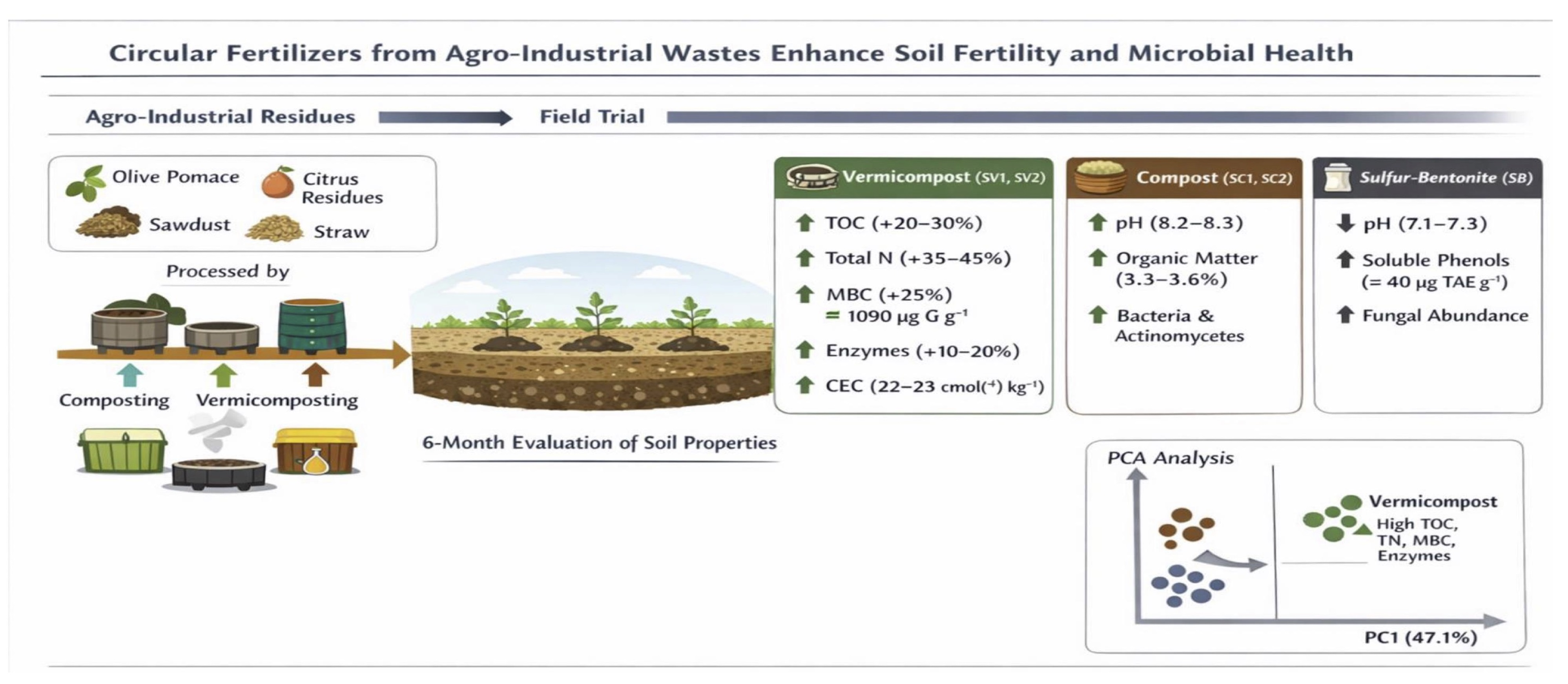 Maffia A, Marra FA, Battaglia S, Mallamaci C, Muscolo A. Enhancing Soil Functionality Through Circular Fertilizers Derived from Agro-Industrial Wastes: Insights into Microbiological and Biochemical Dynamics. Environments. 2026; 13(2):93. https://doi.org/10.3390/environments13020093
