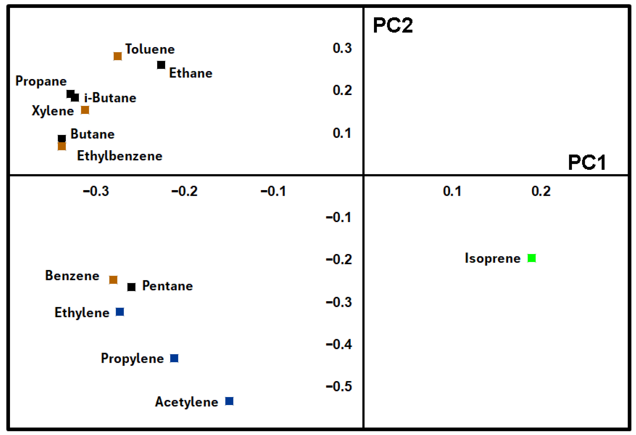 - Wu, E.M.-Y.; Kuo, S.-L. Characteristics of photochemical reactions with VOCs using multivariate statistical techniques on data from photochemical assessment monitoring stations. Atmosphere 2022, 13, 1489. [Google Scholar] [CrossRef]