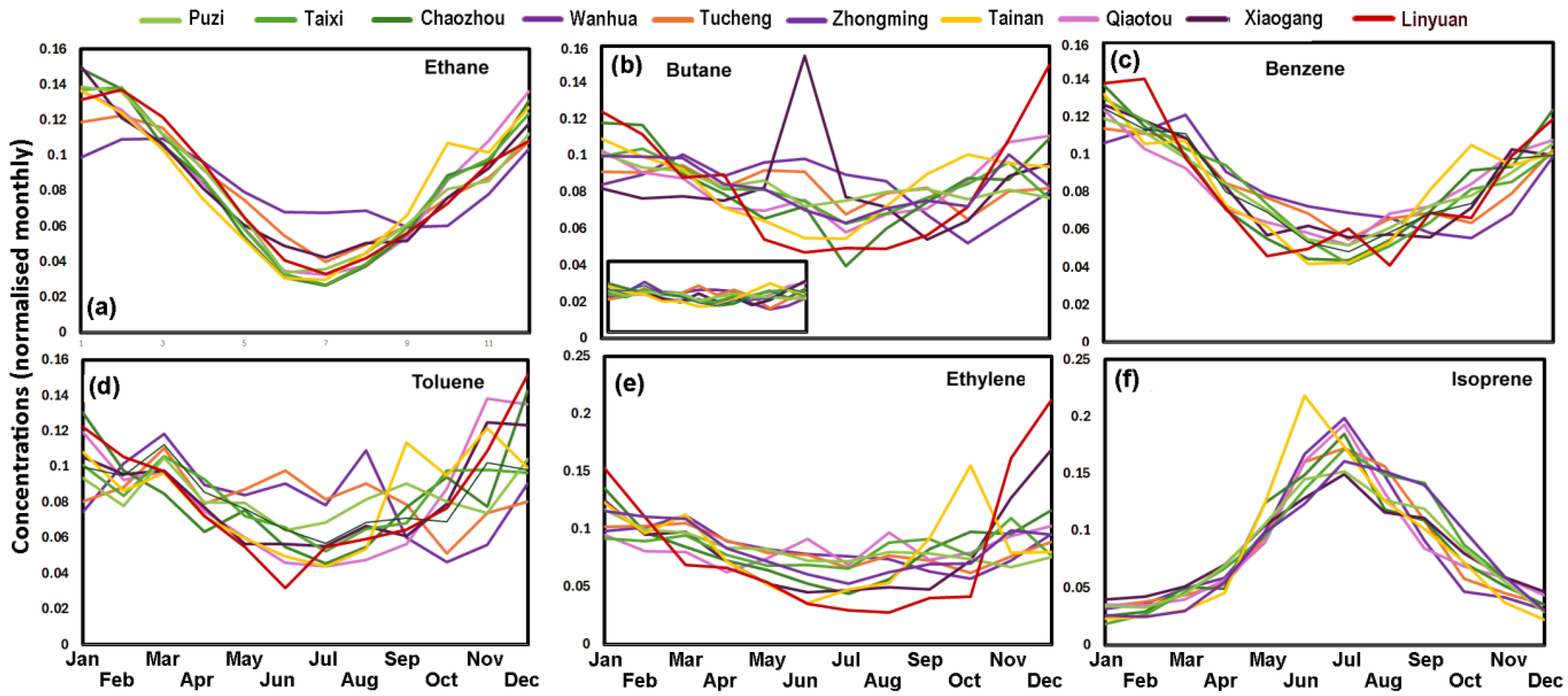 | Chaozhou | Ethane | 4.00 | 27.4 | −0.040 | 0.194 | 0.059 | −0.064 | −0.44 | Significant (Z = −2.59) | (2006, 2.95) |