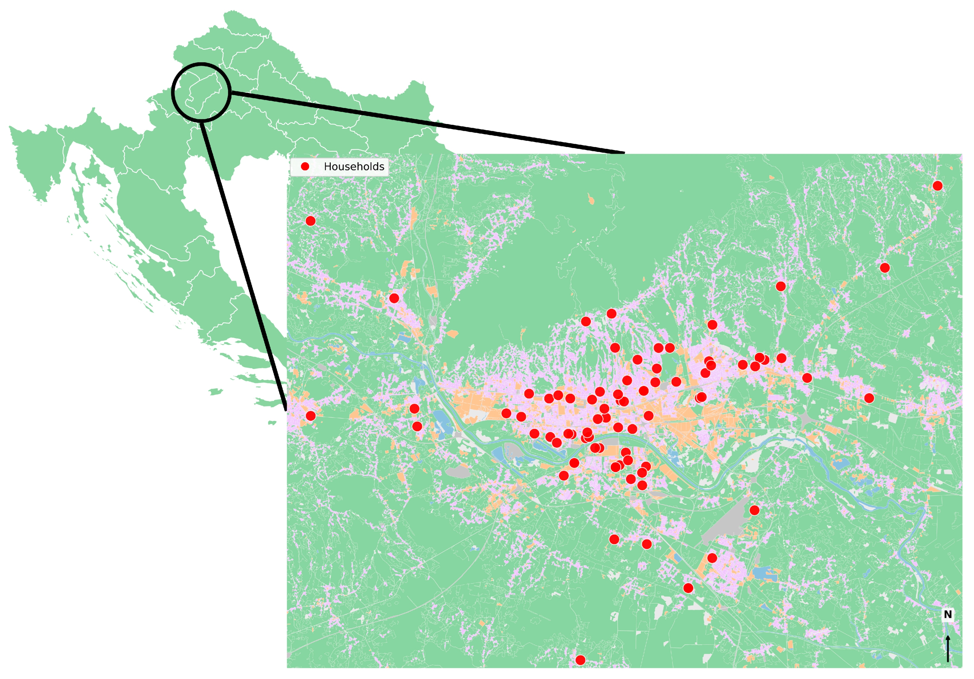- European Union’s Copernicus Land Monitoring Service Information Urban Atlas Land Cover/Land Use 2018 (Vector), Europe, 6-Yearly. Available online: https://sdi.eea.europa.eu/catalogue/copernicus/api/records/fb4dffa1-6ceb-4cc0-8372-1ed354c285e6?language=all (accessed on 12 January 2026).