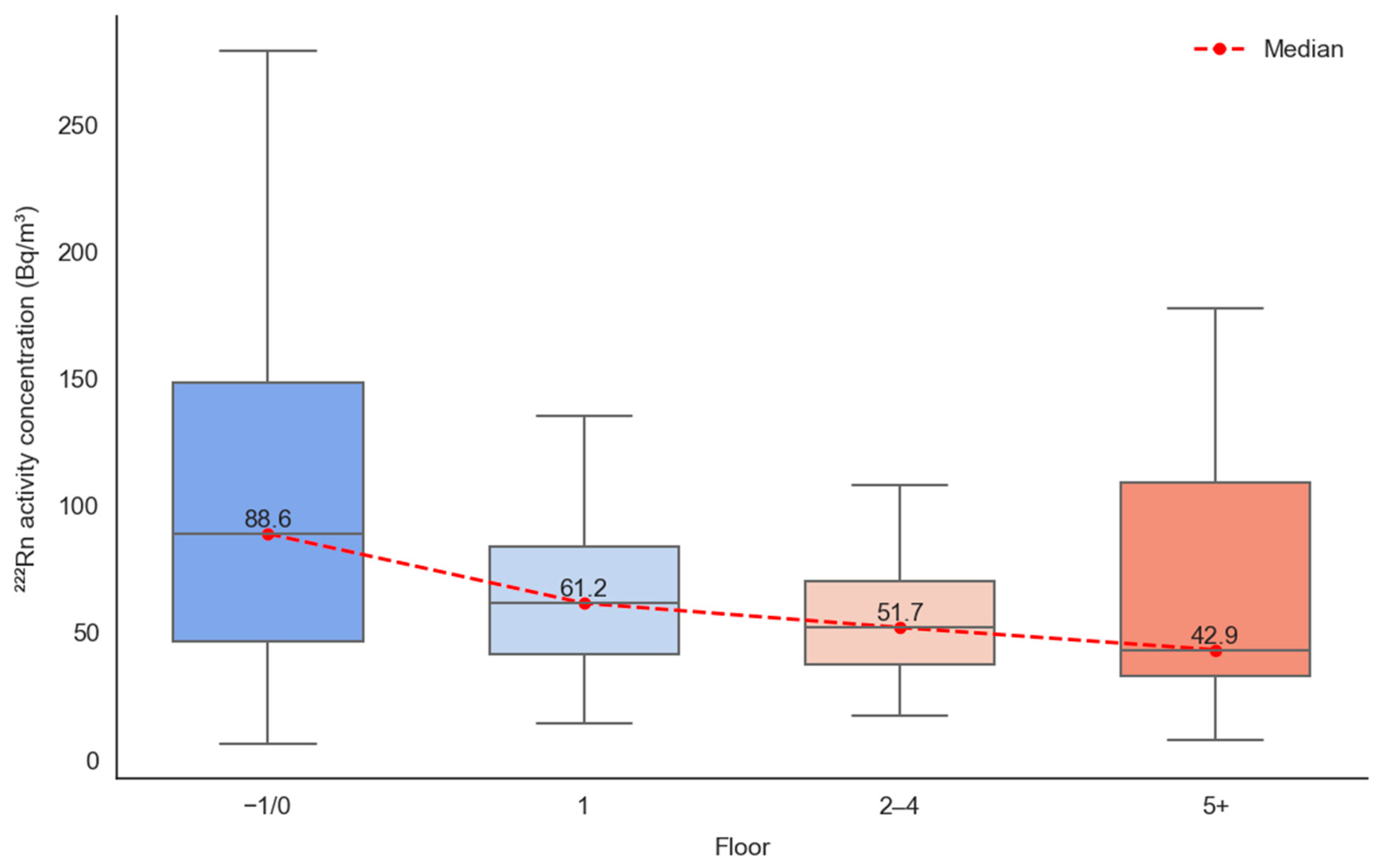- Cucu, M.; Dupleac, D. The Impact of Ventilation Rate on Radon Concentration Inside High-Rise Apartment Buildings. Radiat. Prot. Dosim. 2022, 198, 290–298. [Google Scholar] [CrossRef] [PubMed]