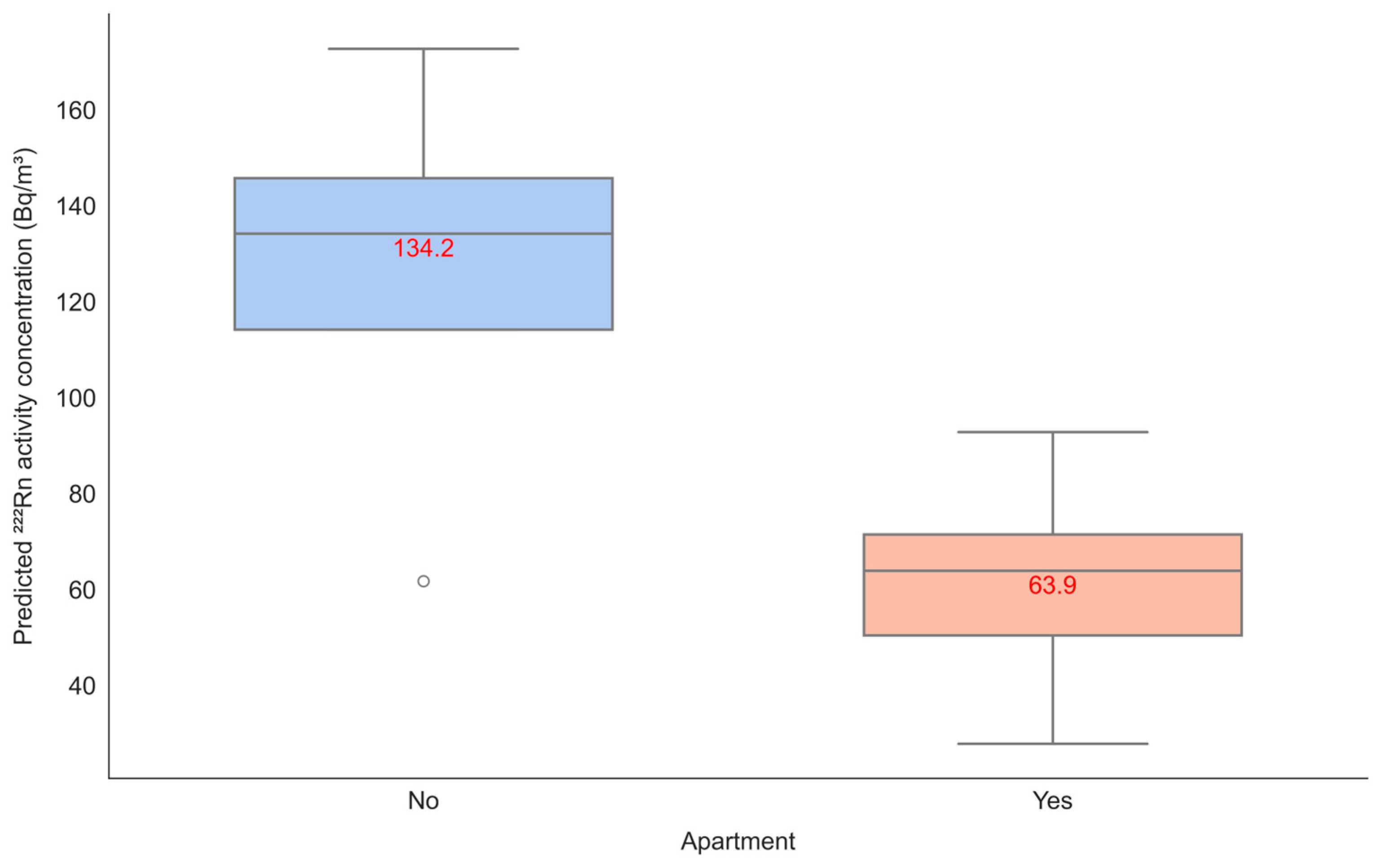 - Wu, P.-Y.; Johansson, T.; Mangold, M.; Sandels, C.; Mjörnell, K. Evaluating the Indoor Radon Concentrations in the Swedish Building Stock Using Statistical and Machine Learning. J. Phys. Conf. Ser. 2023, 2654, 012086. [Google Scholar] [CrossRef]