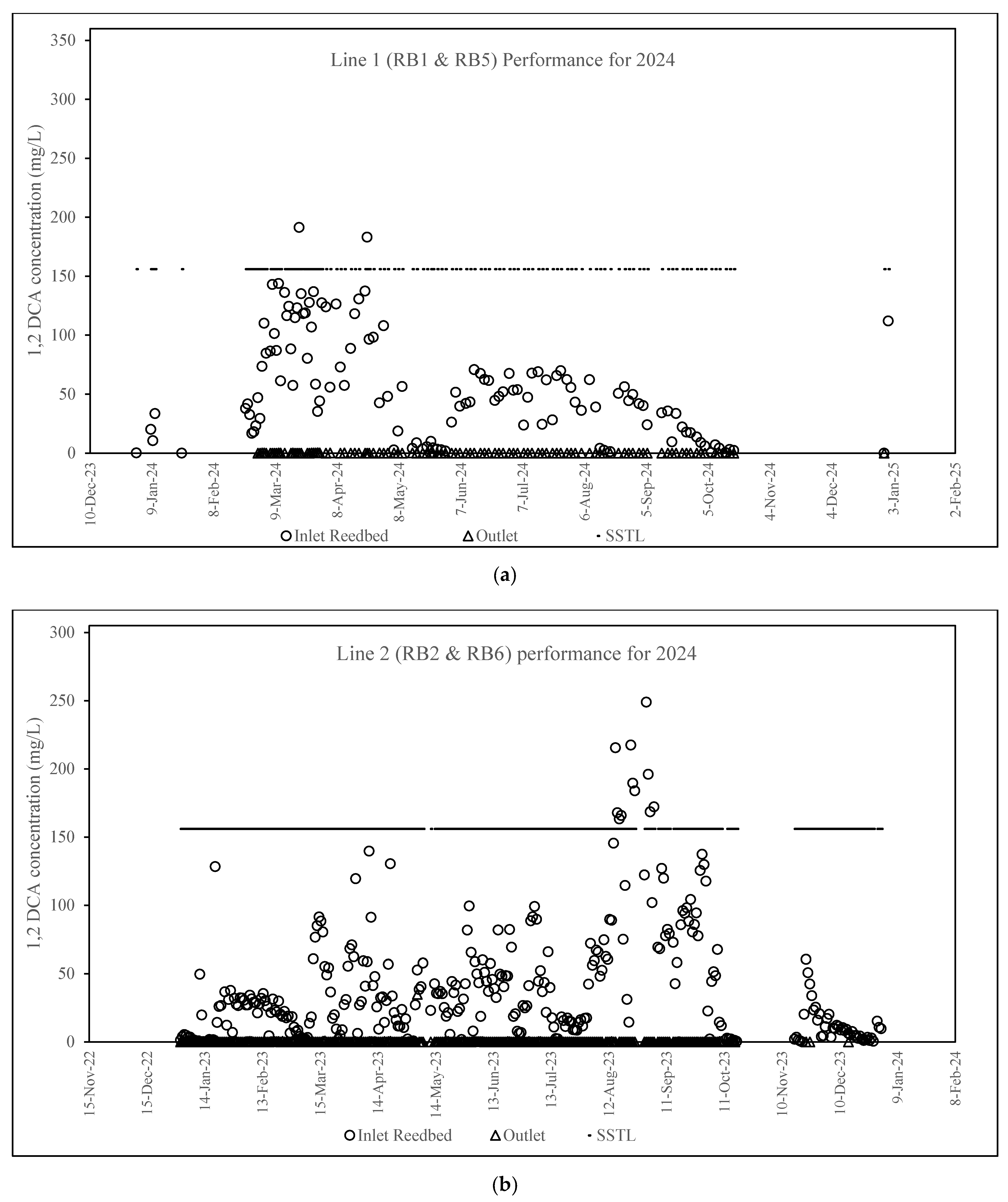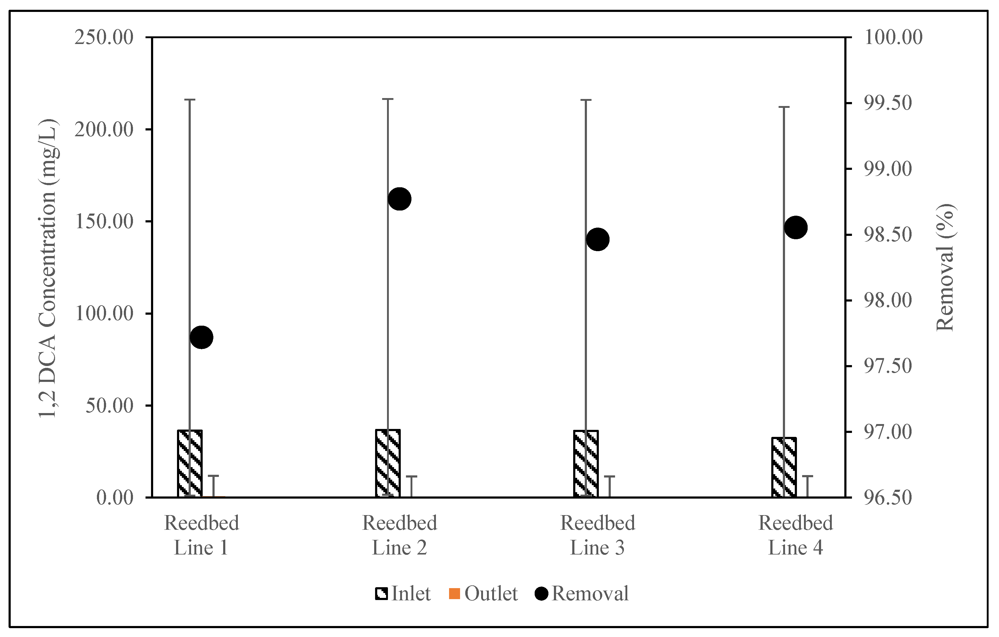 - Rahim, F.; Abdullah, S.R.S.; Hasan, H.A.; Kurniawan, S.B.; Mamat, A.; Yusof, K.A.; Ambak, K.I. A Feasibility Study for the Treatment of 1,2-Dichloroethane-Contaminated Groundwater Using Reedbed System and Assessment of Its Natural Attenuation. Sci. Total Environ. 2022, 814, 152799. [Google Scholar] [CrossRef] [PubMed]