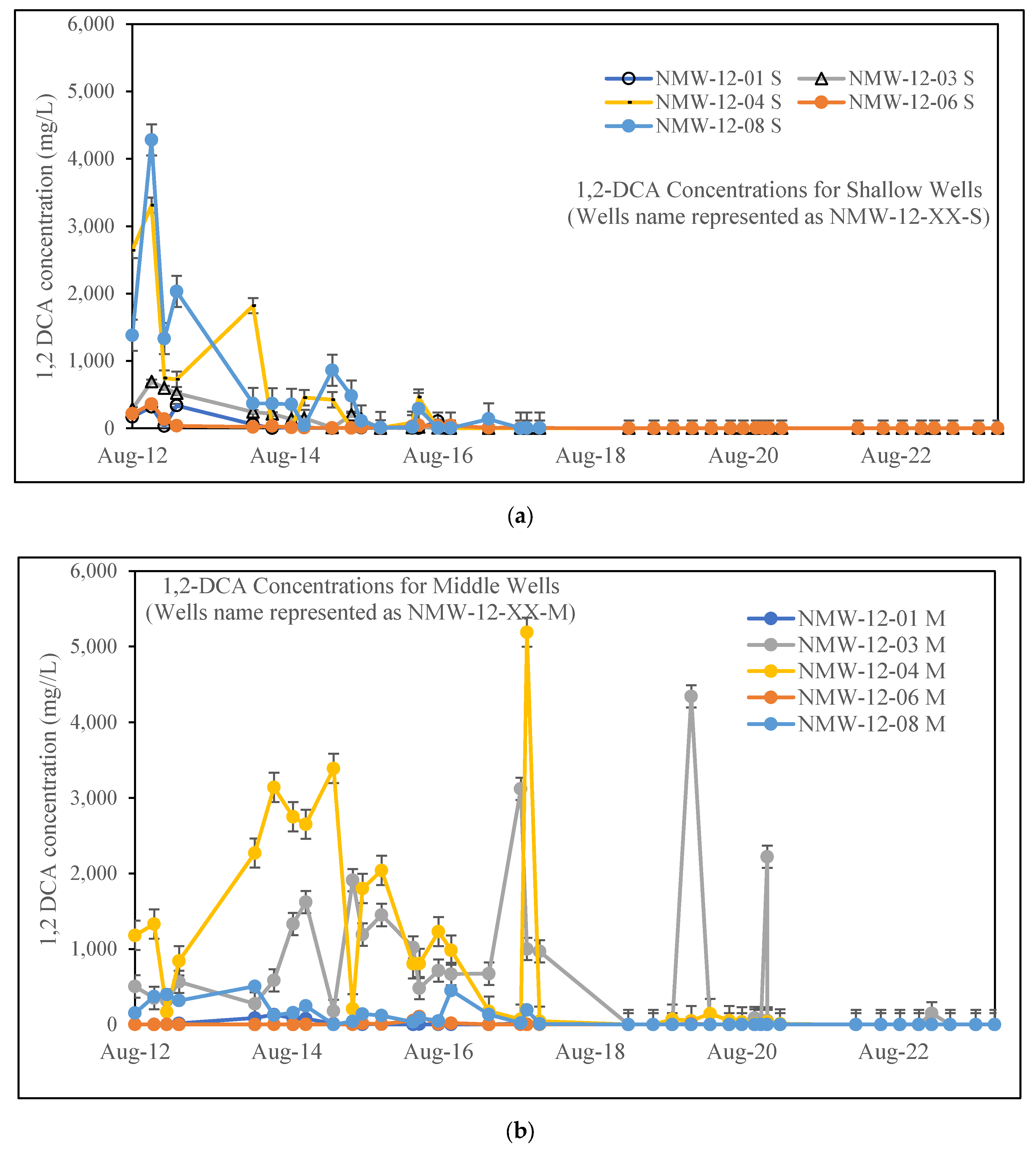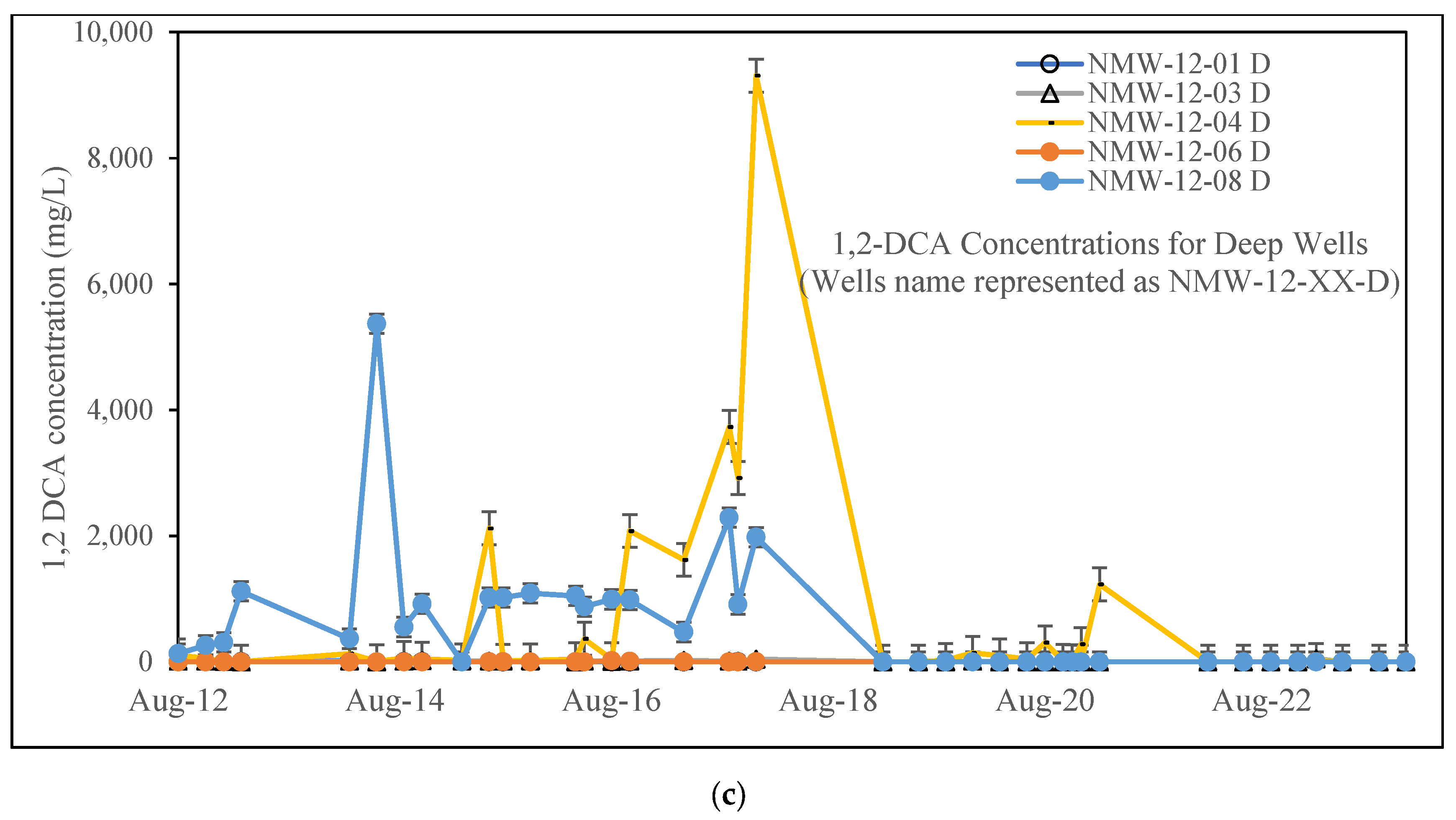 3.2. Natural Attenuation of 1,2 DCA in Groundwater