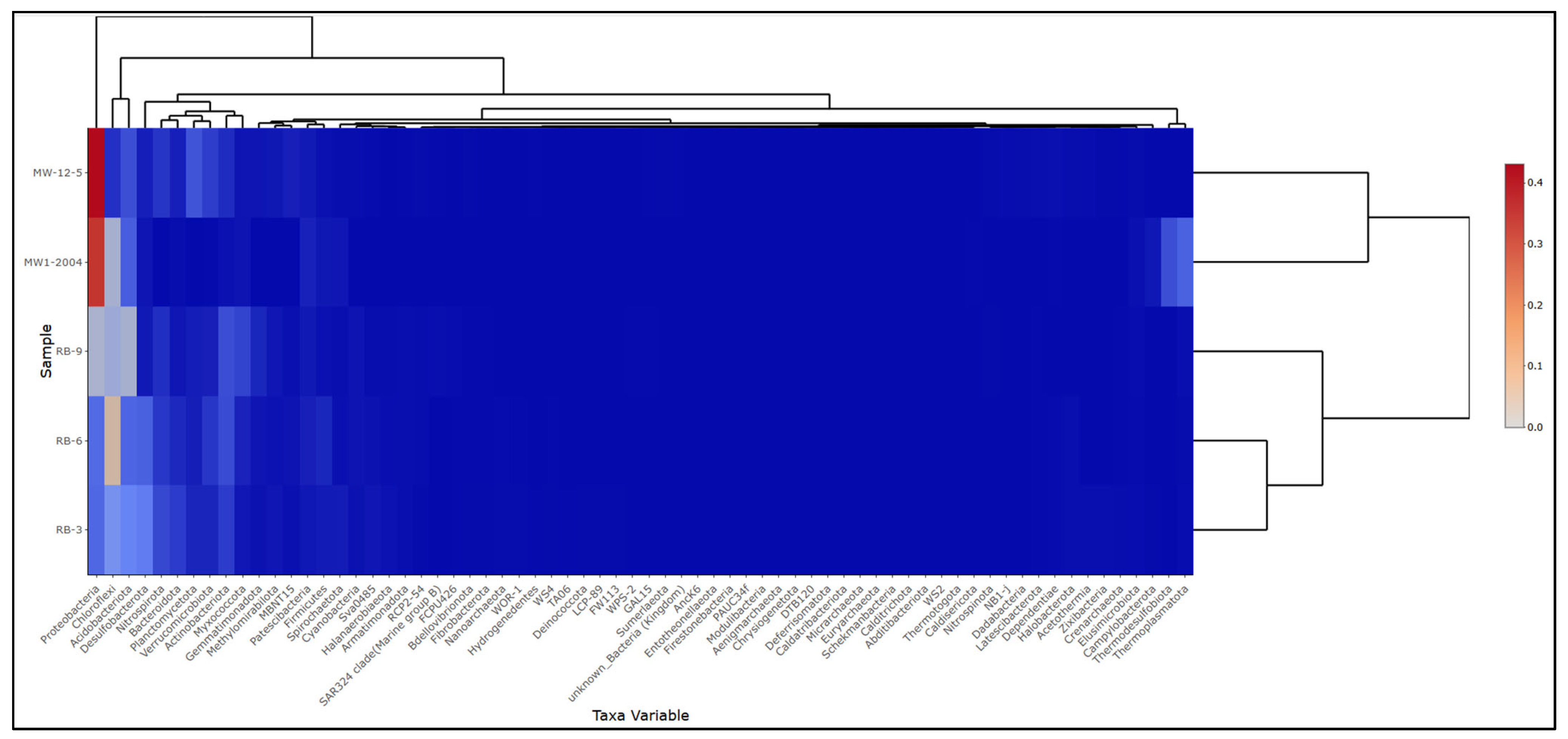 - Huang, L.; Bae, H.S.; Young, C.; Pain, A.J.; Martin, J.B.; Ogram, A. Campylobacterota Dominate the Microbial Communities in a Tropical Karst Subterranean Estuary, with Implications for Cycling and Export of Nitrogen to Coastal Waters. Environ. Microbiol. 2021, 23, 6749–6763. [Google Scholar] [CrossRef]
