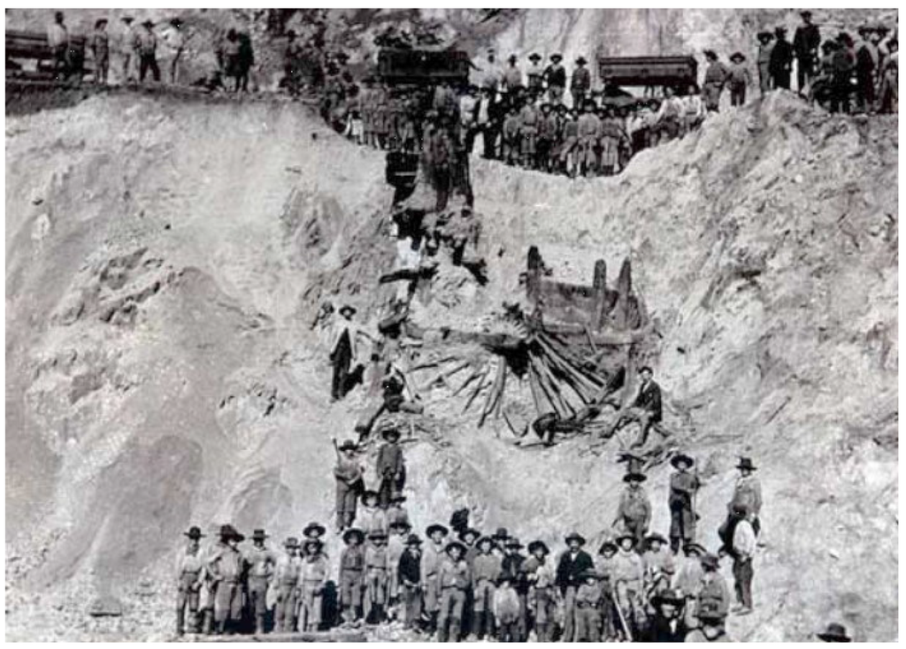 The state resumed exploiting the Río-Tinto mine from 1850 and production in South Lode continued to increase (Figure 4). However, by 1870, extraction ceased as a result of different problems and the government decided to sell the mines, introducing legislative changes to promote the inflow of foreign capital. In 1873, the Río-Tinto Company Limited was founded by British investors, acquiring the Río-Tinto mines.