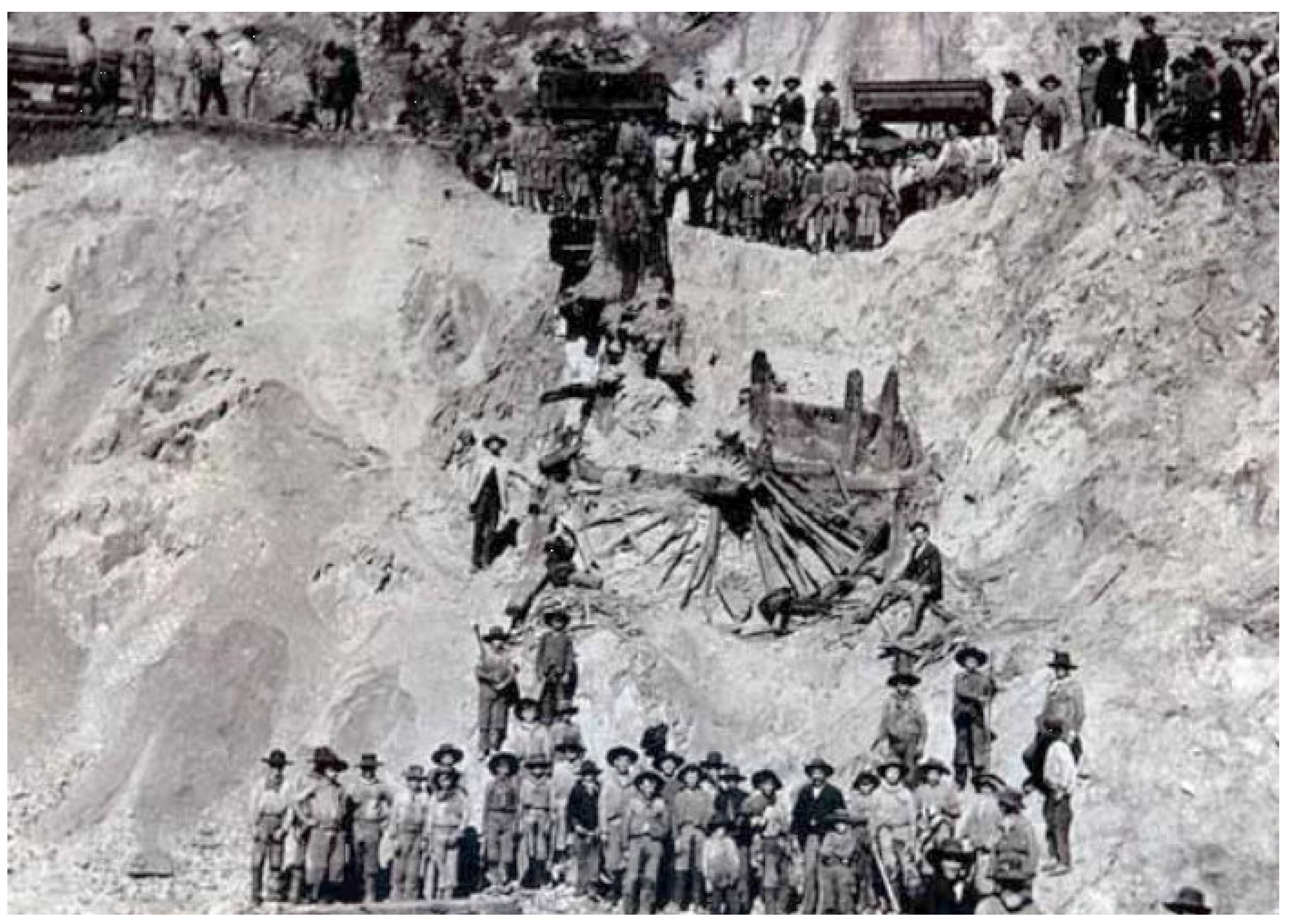 The arrival of the Roman Empire (second century BC) gave a strong impetus to mining, exploration, extraction, drainage systems and metallurgy. Roman technology made possible the exploitation of deposits on a hitherto unknown scale. Mining was generally underground, being silver the main metal extracted from the jarositic materials located below the gossan. Often, it was necessary to lower the water table by drainage galleries, waterwheels (Figure 2), or other systems, reaching depths of even a hundred metres. Other evidence includes caves of Roman origin (actually mines), numerous shafts and huge slag heaps.