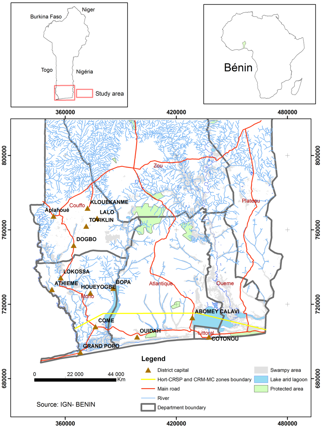 - République du Bénin. Institut National de la Statistique et de Analyse Économique du Bénin, 2013. Institut National de la Statistique et de l’Analyse Economique. Available online: http://www.insae-bj.org/ (accessed on 17 September 2015).
