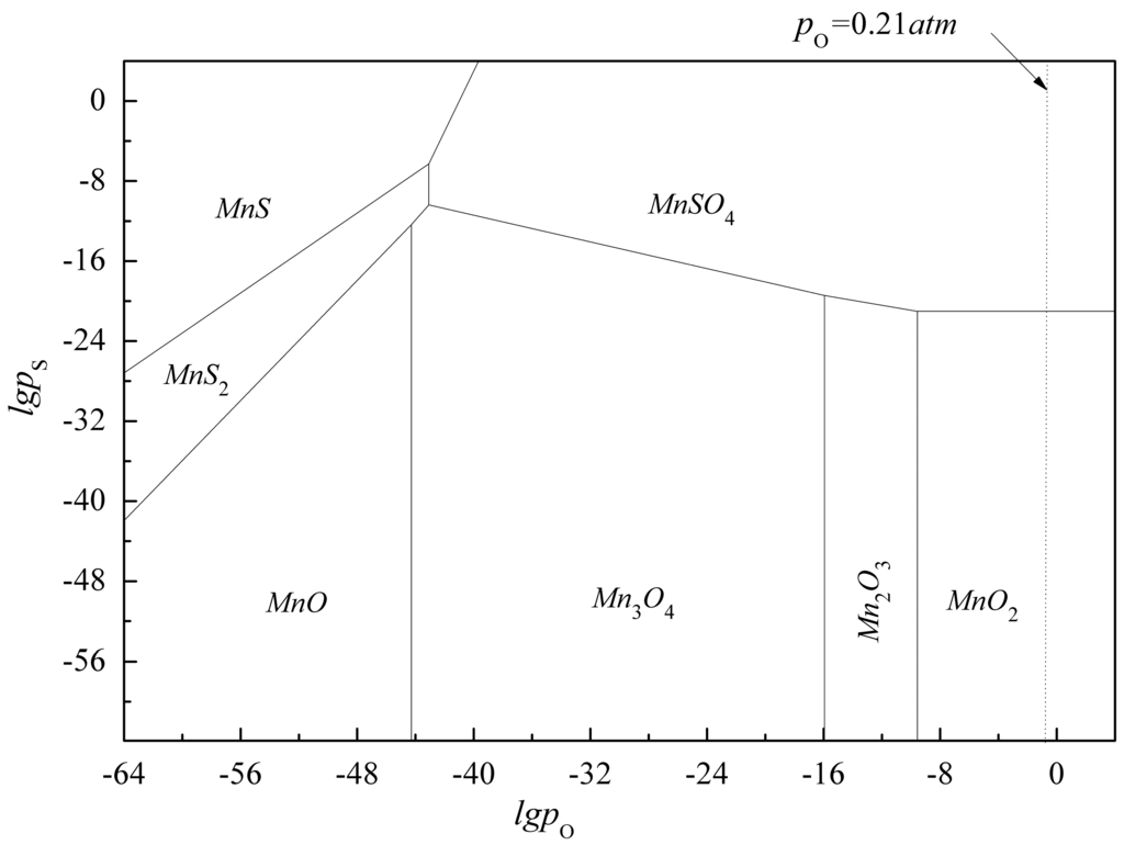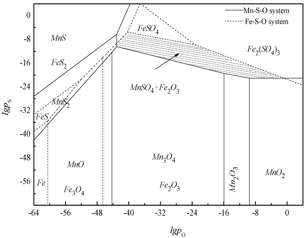 The thermodynamic condition can be obtained from the overlap diagram of the Mn-S-O and Fe-S-O systems, as shown in Figure 4.