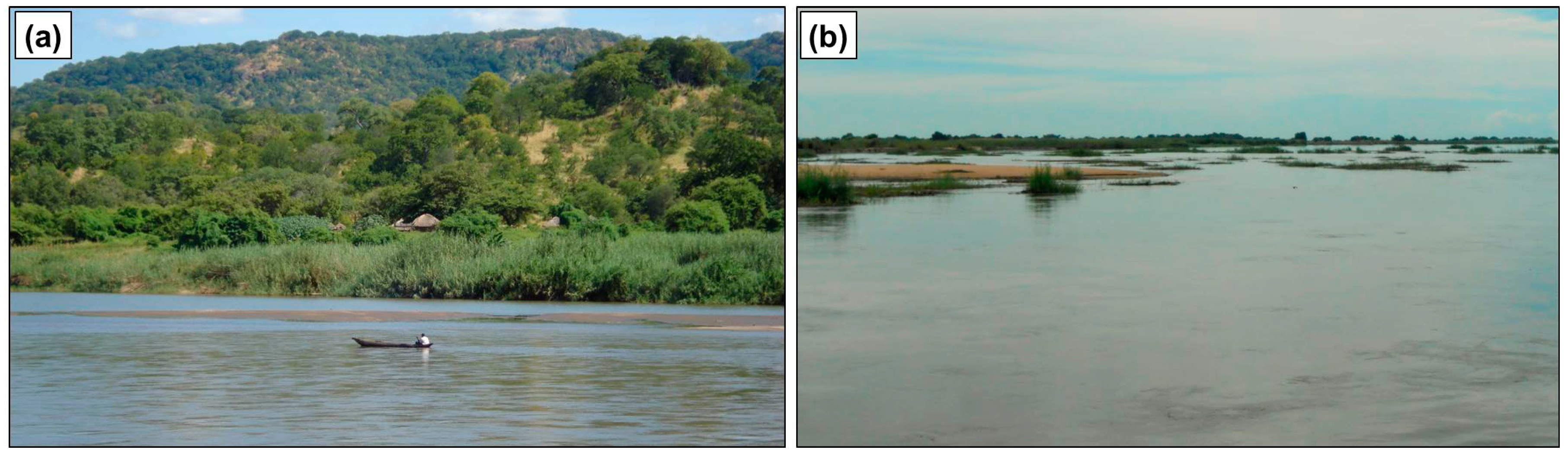 - Moore, A.E.; Cotterill, F.P.D.; Main, M.P.L.; Williams, H.B. The Zambezi River. In Large Rivers: Geomorphology and Management; Gupta, A., Ed.; John Wiley & Sons: Chichester, UK, 2007; pp. 311–332. [Google Scholar]