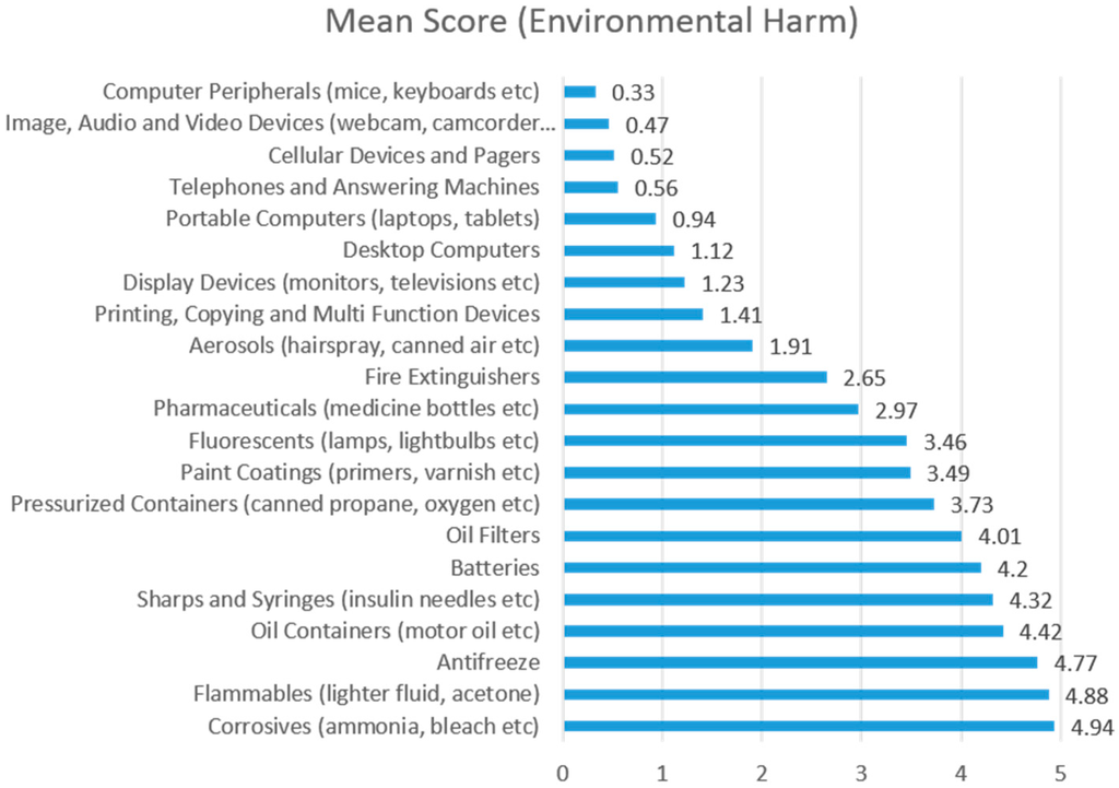 - On a scale from 0 to 5, do you think this product is bad for the environment if disposed of improperly? (where 0 = no environmental harm, and 5 = severe environmental harm).