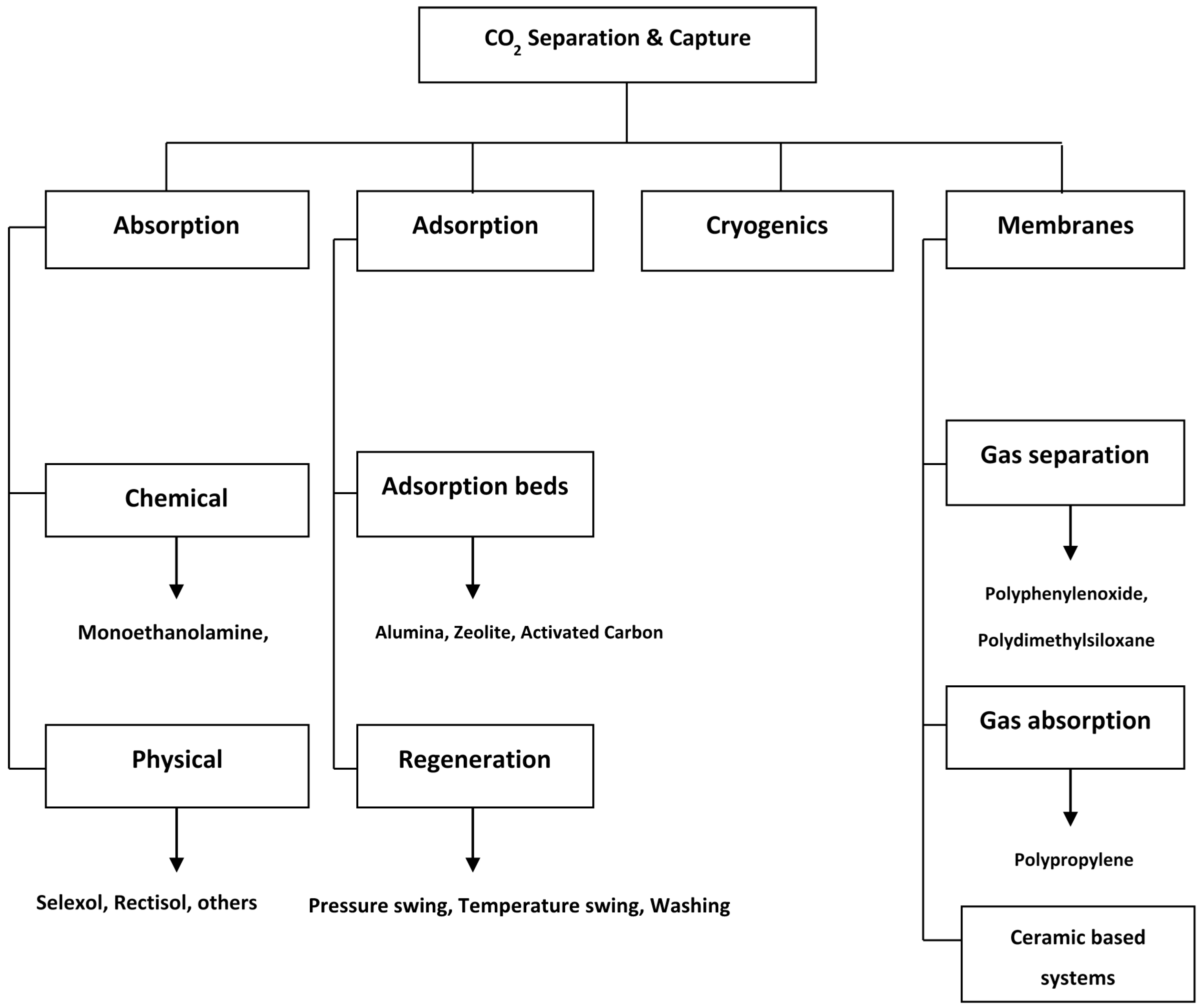 The preference of one technological route over others could be attributed to its ease of access, its possibility of the capture process, retrofitting to existing power plants, the maturity level of such a technological route and the period needed for the implementation of such technology [105]. Currently, there is a wide range of CO2 capture and separation techniques from gas streams, which could be implemented in the South African coal-fired thermal power plants. They are based on physical and chemical processes, which include adsorption, absorption, cryogenic and membrane separation technologies. They are discussed below.