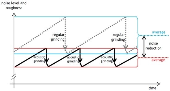 Another preferred option is maintaining and correcting the rail profile, being effective in the frequency range up to 50 Hz, reaching reductions close to 10 dB. With this in mind, railway grinding has been in use for several years now, with a broad range of specific purpose works such as grinding of switches and crossings and removal of defects and specific sites harder to reach by other mitigation methods. The process of grinding a rail produces a much more consistent profile, transversely and also longitudinally, and can remove shallower depths of metal than most other measures, such as milling and planning, which increases rail life as illustrated in Figure 4. Along with that, acoustic grinding stands as a much better developed method for this target. For this reason, rail acoustic grinders are the most used equipment for corrective maintenance of railways [,].