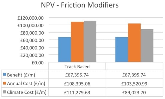 Based on Figure 4, the outcome of this analysis exhibits that even though vehicle based lubricants are considered a state-of-the-art method, with higher initial costs (£30,000 compared to £20,000), the benefits of choosing this measure stand out by taking into consideration the long-term benefits. The maintenance of this method is also cheaper, but the replacement period is wider.