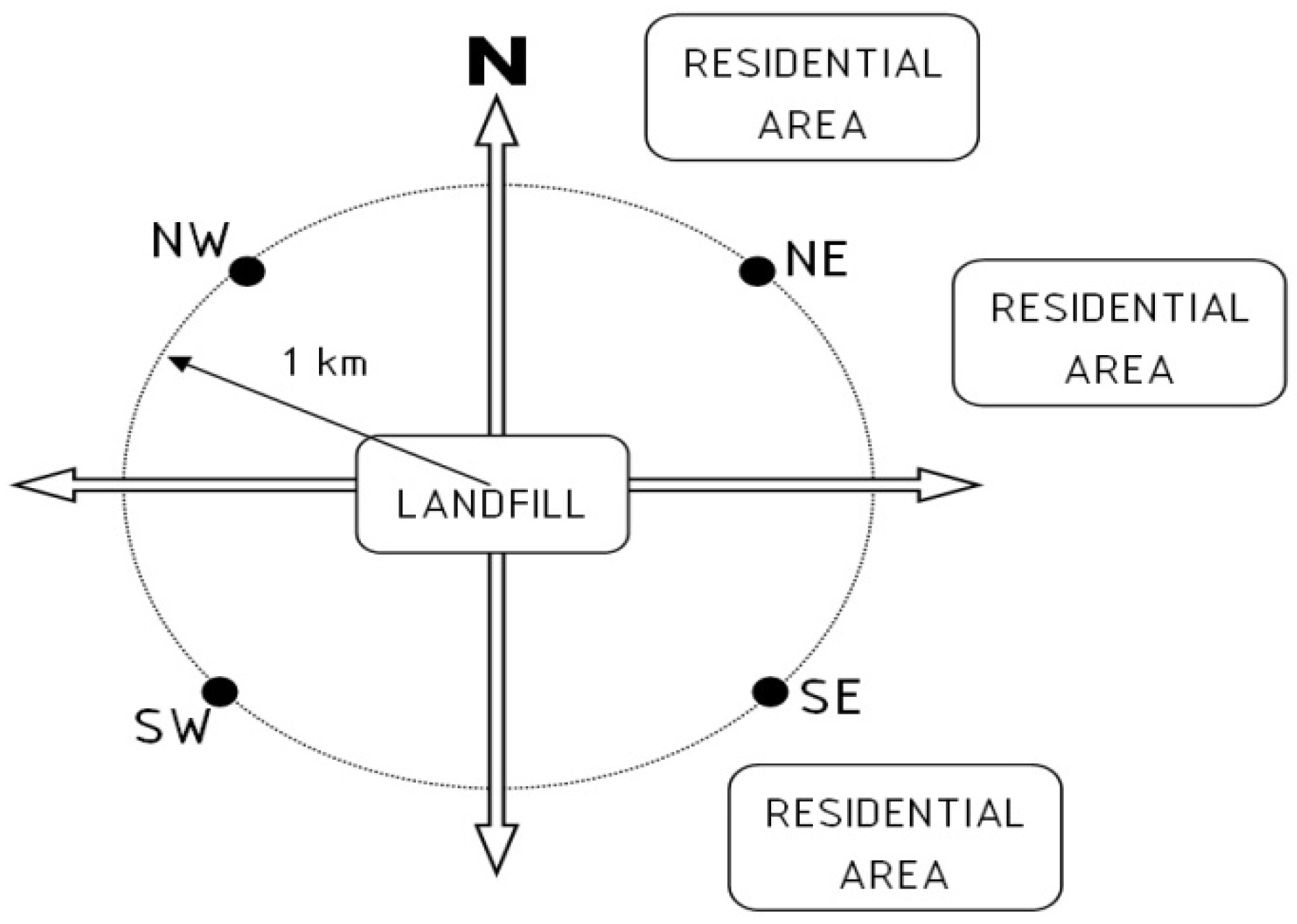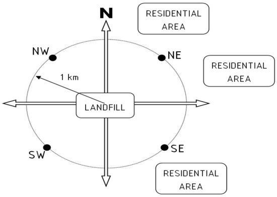 Schematic plan of investigation of ambient air beside the municipal landfill.