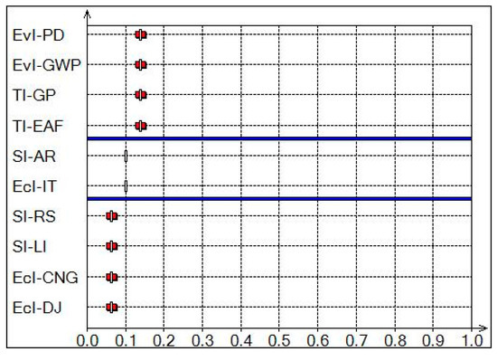 APIS is then employed to generate a numeric estimate of the weighting information in Equation (13) and also to calculate the General Sustainability Indices (GSI). The process was repeated for each indicator.