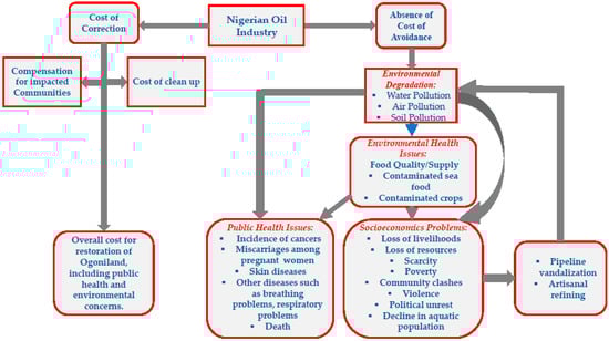 “Cost of Quality” conceptual framework showing the convoluted environmental, public health, and socioeconomic issues in Ogoniland.