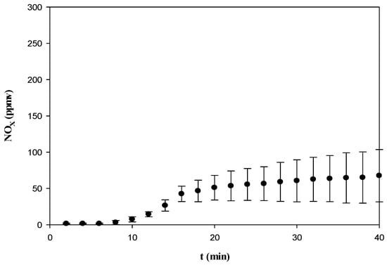 Emissions of NOx from the torrefaction of WBC at 563 K and 40 min.