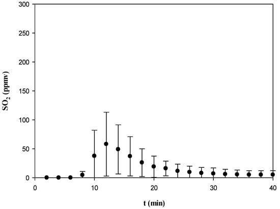 Emissions of SO2 from the torrefaction of WBC at 563 K and 40 min.
