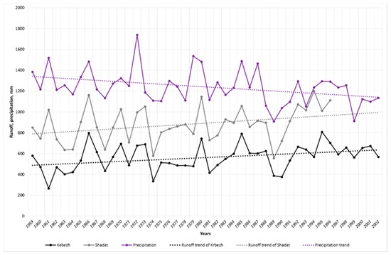 Kebezh and Shadat runoff trends vs. mean annual precipitation trend.