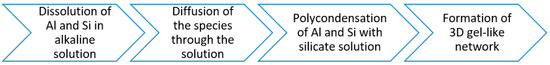 The formation of a geopolymer is a result of several chemical reactions, which starting from an amorphous silico-aluminate source, lead to a 3D-structure (Figure 1). The geopolymerization can be scheduled as follows: