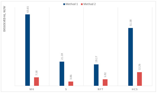 Figure 3. Dissolved Al after leaching for 72 h in 7 M NaOH (% w/w).