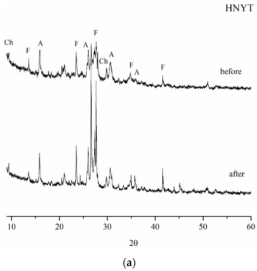 Figure 4 reports the results of the X-ray diffraction analysis of the heat-treated original NYT samples.