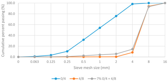 To create an open structure of concrete, single-size coarse aggregate of fraction 4/8 was used. To maintain the desirable performance of pervious concrete, 7% of sand was added to the aggregate mixture. The properties of aggregate are given in Table 1. The sieve analysis of aggregate is given in Figure 1.