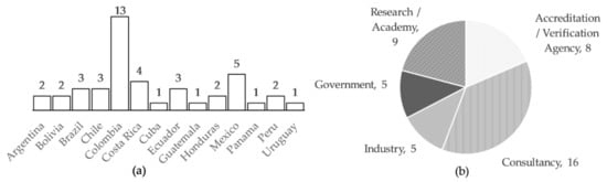 Forty-three professionals out of the 59 initially invited, responded and accepted to participate in the project, representing 14 of the 15 countries initially considered. The largest number of participants came from the consulting sector (37%) and academia (21%), a possible reason is that in these sectors is where the greatest disclosure of the methodology is found. On the other hand, there was a high participation of accreditation and verification bodies (19%), due to their interest of developing an eco-labeling scheme for the region.