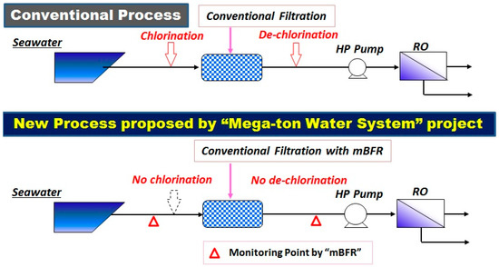 With the rapid spread of seawater desalination plants, operational problems have increased due to the poor design of the plant systems and improper operating conditions. Therefore, along with facility cost reduction, technology should be improved to enable reliable plant operation by preserving facility specifications [2,3]. For this reason, Japan’s national research Funding Program for World-Leading Innovative Research & Development on Science and Technology (FIRST Program) promoted in-depth research of water treatment core technologies, the “Mega-ton Water System”, and included research on basic and system technologies [2,3].
