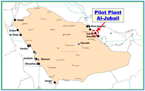 Sites of pilot plant verification and full plant verification of the NEDO-SWCC Demonstration Project in Saudi Arabia.