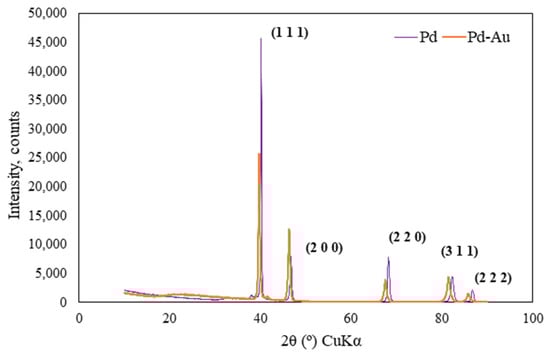 XRD analysis for Pd and Pd-Au MRs at 400 °C.