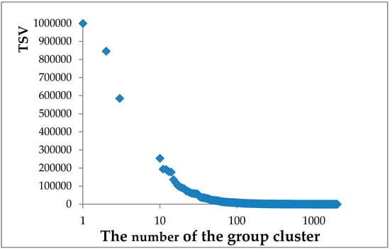 Change in trajectory statistic value (TSV) based on number of clusters.