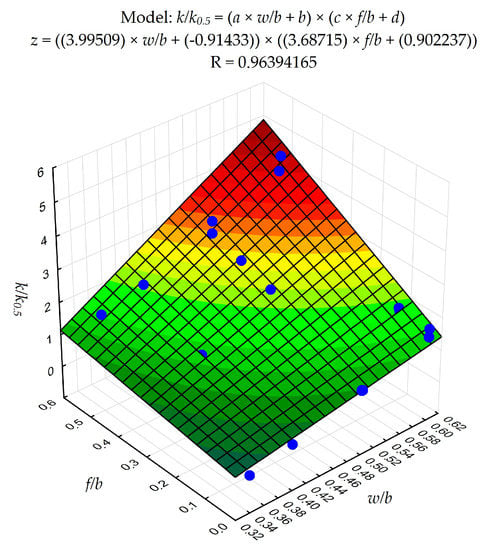 k/k0.5 = (4.00 × w/b − 0.91) × (3.69 × f/b + 0.90),