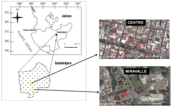 Location of the sampling sites in Guadalajara, Jalisco (Mexico).