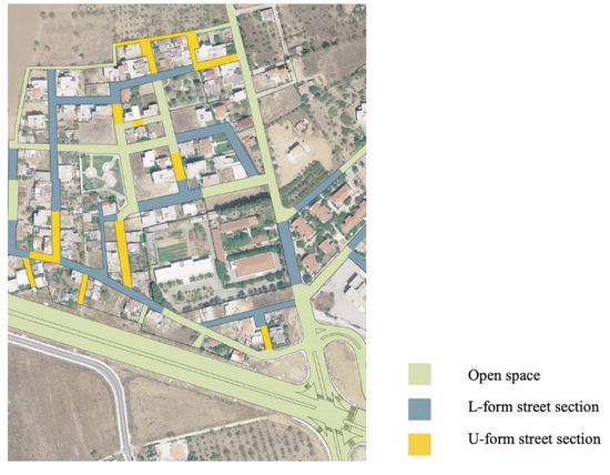 U-shaped, L-shaped sections, and the open road are usually the three categories that are represented in this map; its aim is to simply represent the third dimension on a two-dimensional (2D) map, i.e., to draw a layer that outlines the acoustic propagation conditions of sounds (see Figure 5 below).