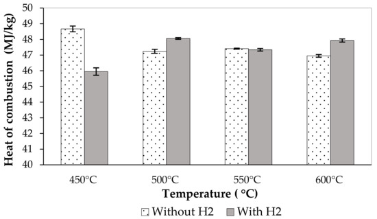 3.3. Effect of Pyrolysis Condition on the Pyrolytic Liquid Fuel