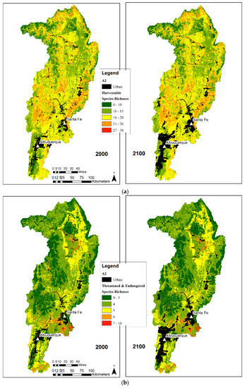 Samson, E.A.; Boykin, K.G.; Kepner, W.G.; Andersen, M.C.; Fernald, A. Evaluating Biodiversity Metric Response to Forecasted Land Use Change in the Northern Rio Grande Basin. Environments 2018, 5, 91. https://doi.org/10.3390/environments5080091