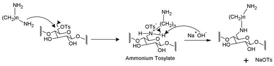 - Hueser, E.; Heath, M.; Schockley, W.H. The Rate of Esterification of Primary and Secondary Hydroxyls of Cellulose with p-Toluenesulfonyl (Tosyl) Chloride. J. Am. Chem. Soc. 1950, 72, 670–674. [Google Scholar] [CrossRef]