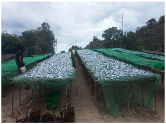 Fishing communities along Lake Malawi faced health issues including high incidences of malaria, bilharzia and in some cases cholera. Malaria prevalence stemmed from two factors: the presence of swamps and the misuse of bed nets. It was observed that while mosquito nets were provided free by the government, development partners and Non-Governmental Organizations (NGOs), they were hardly used for prevention of malaria. They were mostly used as attachments to fishing nets and as covers of fish drying racks (Figure 2 and Figure 3). Some mosquito nets were also used to fence vegetable gardens and as covers for packaging fish. In other cases, where mosquito nets were correctly used, malaria cases could be attributed to the fact that men tended to spend long hours in the dark as they prepared nets for their next fishing trip or whilst fishing while women were busy tending to their processed fish on the drying racks. During these times mosquitos causing malaria could easily bite them.
