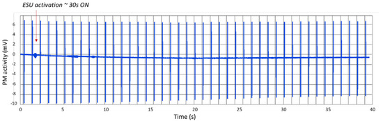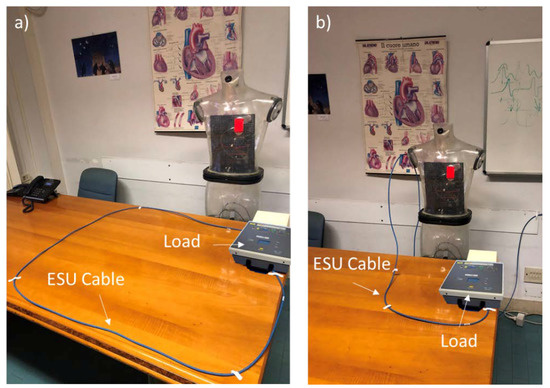 - Leaving the ESU electrode open, not connected to any load (worst-case condition in terms of electric field);