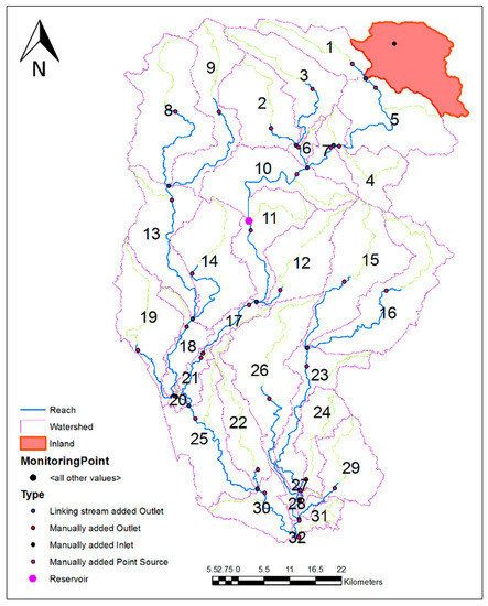 - Santhi, C.; Arnold, J.G.; Williams, J.R.; Hauck, L.M.; Dugas, W.A. Application of a Watershed Model to Evaluate Management Effects on Point and Nonpoint Source Pollution. Trans. ASABE 2001, 44, 1559–1570. [Google Scholar] [CrossRef]