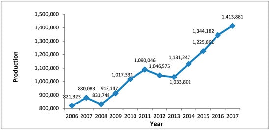 Production of passenger cars in the Czech Republic (CR) between 2006 and 2017 (according to []).