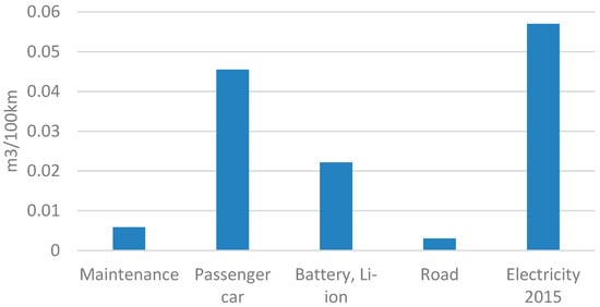 The study of water consumption of electric vehicle battery charging was conducted to explore the process’ environmental aspects and determine its water footprint. Water resource management is an important determinant of electromobility development, but, so far, the reported research on environmental impact assessment has been scarce. Water footprint (WF) methodology is a new concept introduced by Hoekstra [,,] to quantify and map indirect water use and show the relevance of involving consumers and producers along the supply chains in water resource management. In the paper, the amount of water used for electric vehicle battery charging included direct and indirect water usage. Direct water use is physically used water during the process, while indirect use is water needed to create something used in the process. This indicator is applied to the consumed water volume and only assesses used water. The regional factors are weighed averages of the freshwater withdrawal by country, based on data from the Pacific Institute []. Data from the Pacific Institute provides information about resources to help protect and preserve fresh water around the Earth.